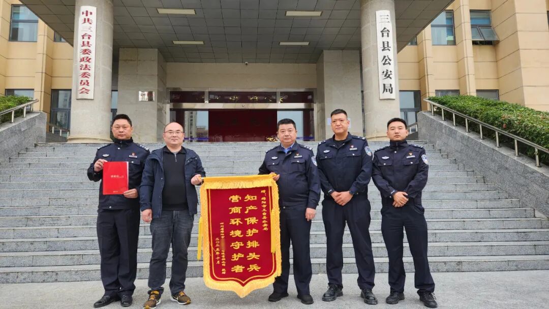 近日,受害品牌白酒公司专程派员送来印有“知产保护排头兵 营商环境守护者”的锦旗并附上感谢信,对三台公安快速侦破案件、成功挽回企业经济损失、维护市场秩序的得力举措表示诚挚感谢。