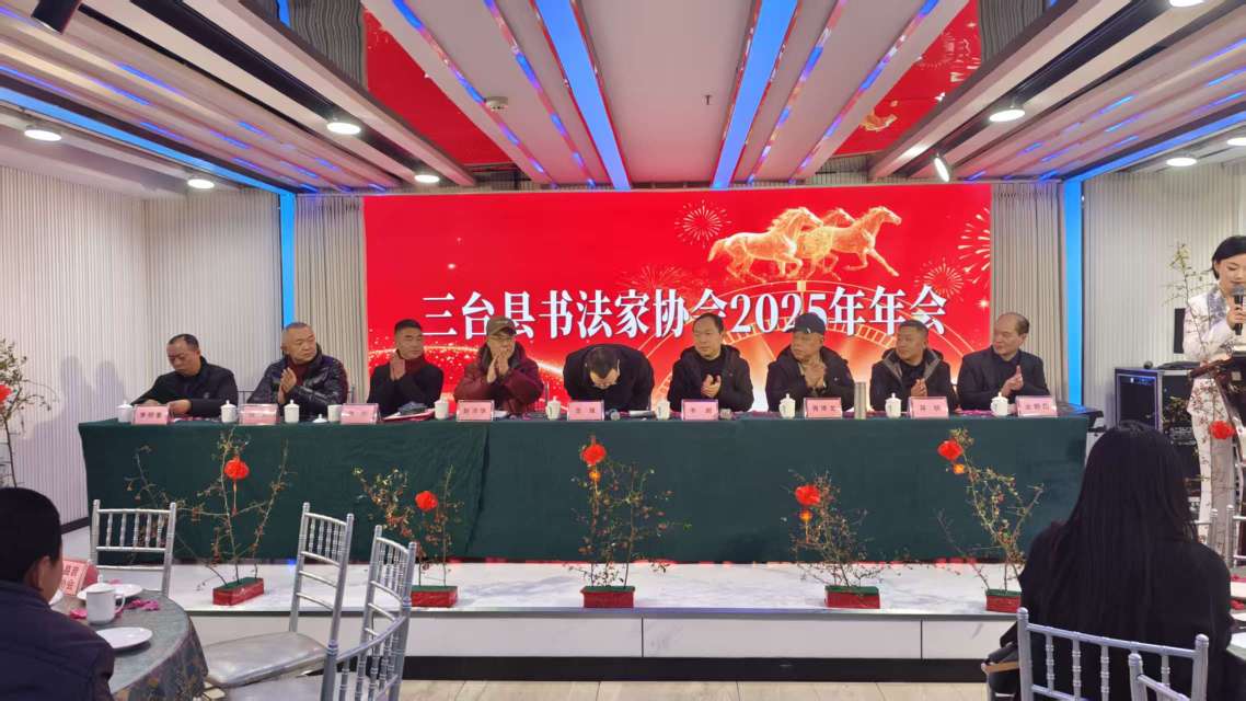 冬日暖阳融雅韵,翰墨丹青聚知音。今日,三台县书画家协会全体会员齐聚金喜登大酒店负二楼宴会厅,隆重召开2025年年会。这场集总结表彰、交流展示、展望未来于一体的文化盛会,为全县书画爱好者搭建了沟通的桥梁,更彰显了传统文化在新时代的蓬勃生机。